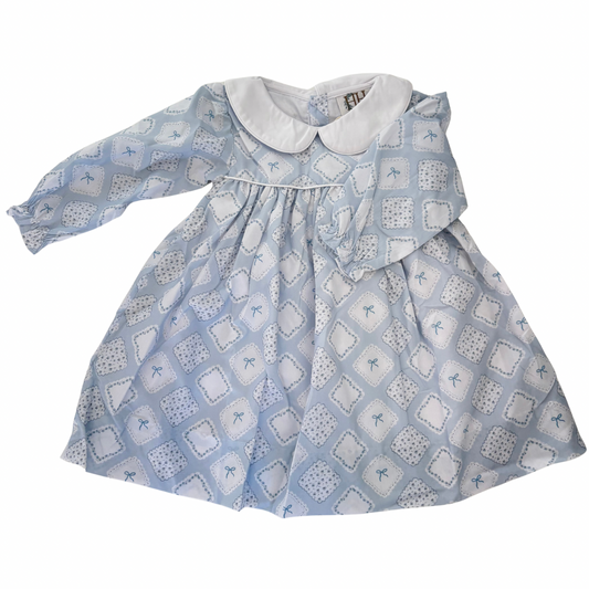 Girls Quilted Bow Patch Long Sleeve Dress
